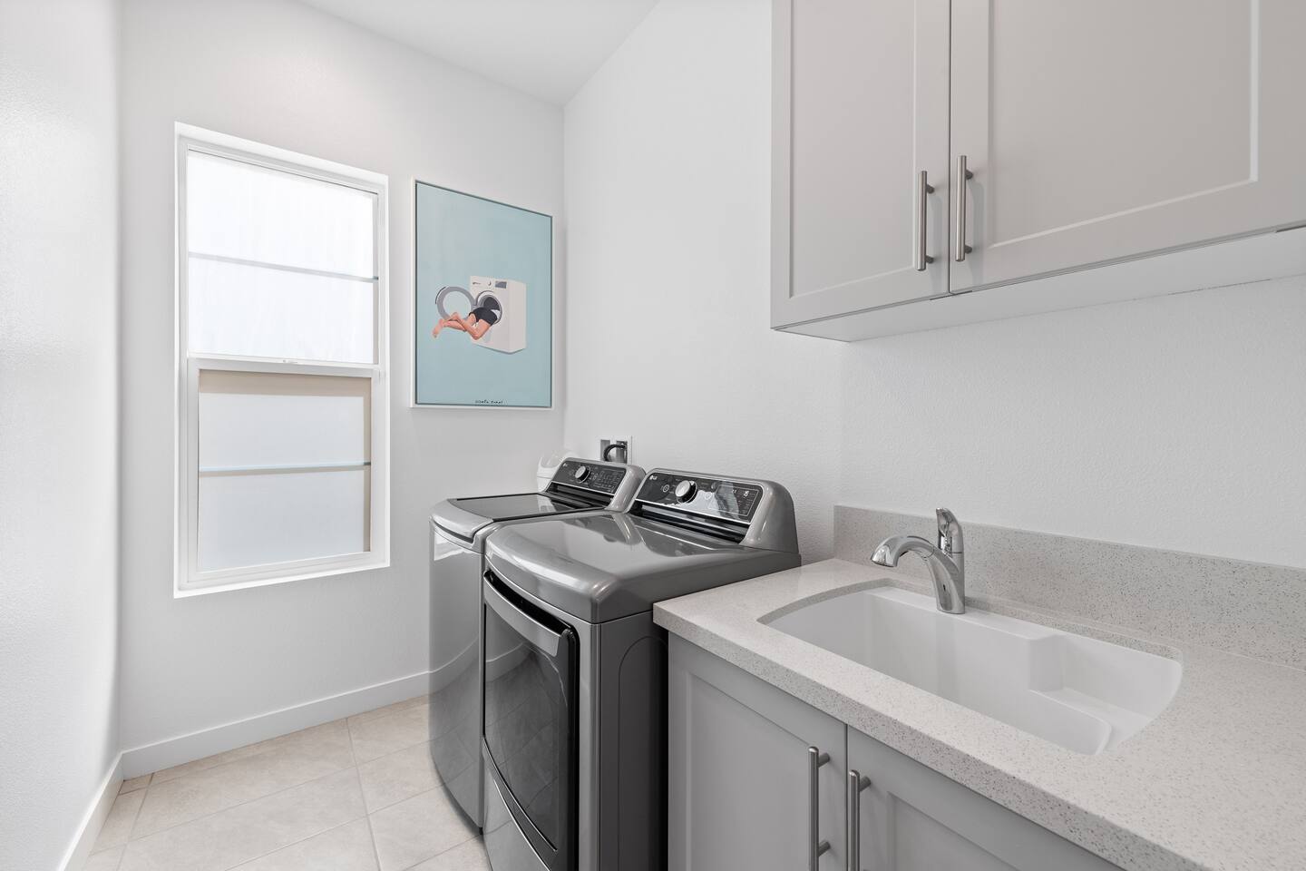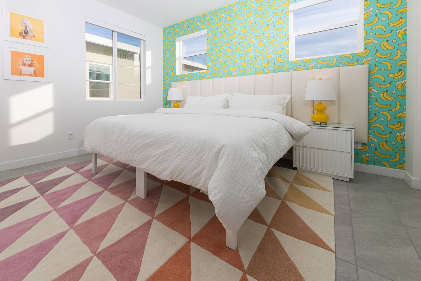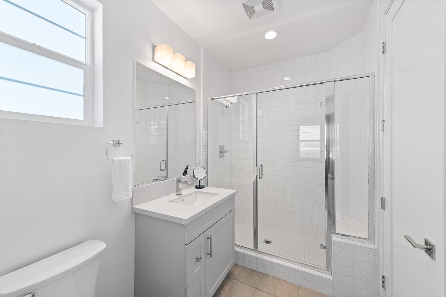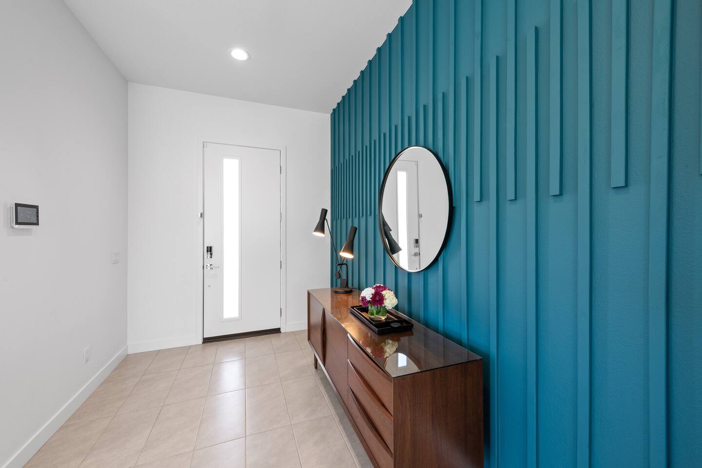 Welcome to your perfect Palm Springs vacation rental! Located in sunny South Palm Springs, this stylish 3-bedroom, 2.5-bath luxury home offers the ideal blend of modern comfort with a "nod" to mid-century design — perfect for families, couples, and golf getaways. Step into your private backyard oasis featuring a sparkling saltwater pool with a spillover spa, a relaxing sun shelf with umbrella sleeve, playful deck jet sprays, four chaise lounge chairs for sunbathing, comfortable conversation seating for four, outdoor dining for six, and a gas grill for evening BBQs under the stars. Inside this modern Palm Springs Airbnb, an expansive great room connects the entryway, living room, dining area, and kitchen. South-facing sliding glass doors flood the space with natural light and open directly to the backyard, while west-facing sliders frame stunning San Jacinto Mountain views. The living room features a plush mid-century modern sofa with feather-stuffed cushions, terrazzo tables perfect for putting your feet up, and a 75” Roku Smart TV paired with a Sonos soundbar for movie nights. Just behind the seating area, you'll find an iconic Saarinen-style oval dining table with seating for six, ideal for group meals or game nights. The fully equipped kitchen makes cooking a breeze with sparkling white quartz countertops, warm gray cabinetry, and stainless steel appliances including a 6-burner gas range, refrigerator with ice maker, microwave, and dishwasher. A casual peninsula offers additional seating for three and helps define the open space. On the main level, the Primary Suite features a king-size bed with a Casper memory foam mattress, a 43" Roku TV, a ceiling fan with light, and a sliding glass door offering direct access to the backyard and stunning mountain views. The ensuite bathroom includes a dual vanity with ample storage, a large walk-in shower, a separate water closet, and a walk-in closet, along with large bedside tables and a 5-drawer dresser for guest storage. Also on the main level are a powder room with a pedestal sink, a laundry room with side-by-side Whirlpool washer and dryer, a well-stocked linen closet, and convenient interior access to the 2-car garage. Upstairs, the Secondary Suite offers mid and long-range mountain views and is outfitted with a king-size bed with a Casper memory foam mattress, a 50" Roku TV, a walk-in closet, and a 6-drawer dresser. This bedroom has direct access to the second full bathroom, which is also shared with the Third Bedroom. The Third Bedroom is furnished with two twin beds (that can be converted to a king upon request) and features a 43" Roku TV and a ceiling fan with a light. Throughout the home, you’ll find sleek, modern 12x24” ceramic tile floors softened by stylish area rugs. For added comfort and privacy, motorized window shades can be controlled either by remote or through the smart home panel in the entry. Located near Tahquitz Creek Golf Resort, this luxury Palm Springs rental provides quick and easy access to downtown Palm Springs, Cathedral City, and Rancho Mirage. Whether you’re here to golf, hike, shop, dine, or simply relax by the pool, this modern retreat offers everything you need for an unforgettable desert escape. Palm Springs City ID #068386