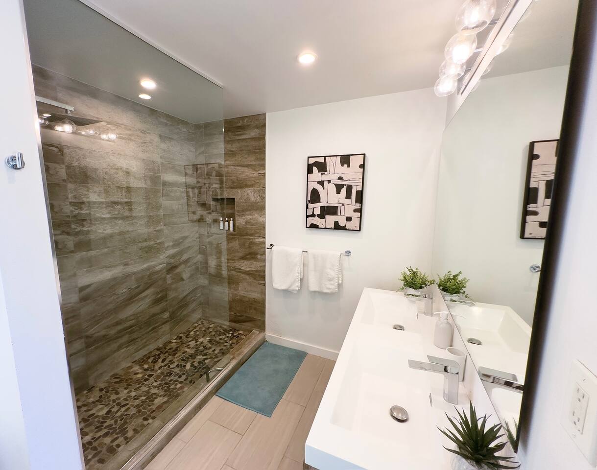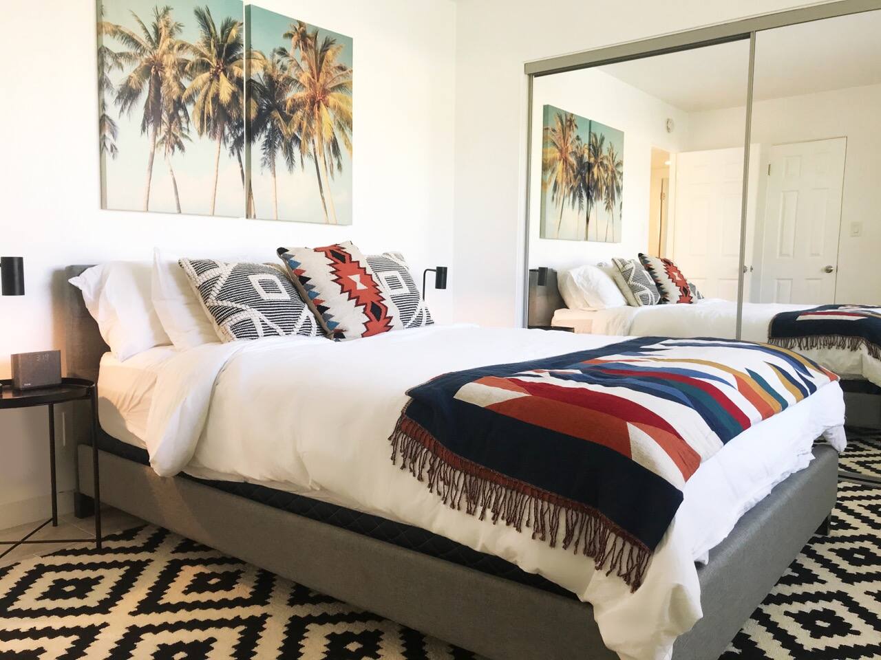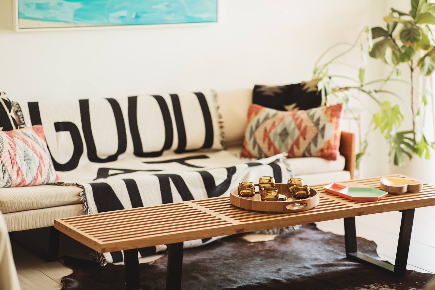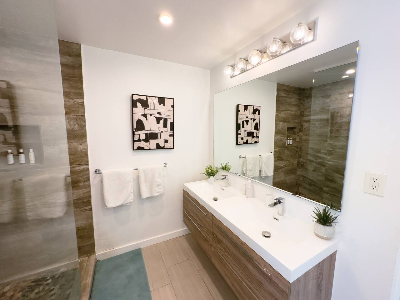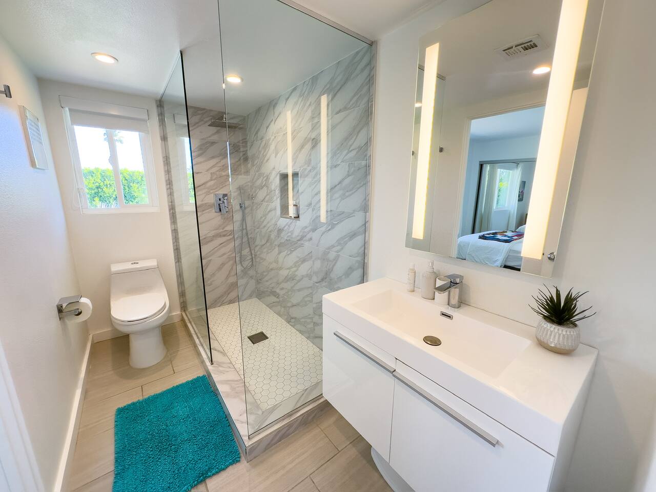 This sprawling California-style home features a new modern kitchen and sleek baths, a fabulous open concept layout and expansive walls of glass that blur the lines between indoor and outdoor living. Inside you'll find three large inspiring bedrooms, a dining area for up to 8 guests, a wood-burning fireplace, flat screen LED television, and high speed internet. There are 2 ways to reach the expansive backyard oasis - including 2 separate 8' sliders, revealing a resort-like poolside paradise. Outside you'll find breathtaking mountain views in every direction, a gorgeous private heated pool, a large open gas fire pit, brand new barbecue, a beautiful covered patio space with dining for 8, and a lawn perfect for playing boules, badminton, giant jenga, spike ball, and corn hole (all of which are provided, along with an assortment of pool toys). The deluxe private master suite offers direct pool access, a king-sized bed, an extra large walk-in closet and private sleek en suite bathroom with dual vanities. The two guest rooms share their own new, beautiful bathroom. Two of the bedrooms also have a dedicated work space for those needing to work from home or for children to homeschool. We have plenty of games for your use such as chess, checkers, poker, monopoly, scrabble, rummikub, dominoes and playing cards . The kitchen is fully stocked with all cooking ware, serving ware, and utensils, perfect for any aspiring chefs. For you coffee lovers there is a nespresso machine, a french press, and drip coffee. For you fresh juice/smoothie lovers, there is a bullet blender. We provide sealed organic hair and body products for each of our guest bathrooms. There is also a pack and play with organic sheets for your little ones, and two additional luxurious fold out beds. PLEASE NOTE THIS IS NOT A PARTY HOUSE THERE ARE VERY STRICT LAWS AROUND NOISE IN PALM SPRINGS We can also arrange a host of wellness add ons for those so inclined; from an amethyst pemf mat, to a vibration plate to a red light panel and a sauna blanket. We can also arrange yoga, meditation, and breath work classes. Hot tub heating is included in your stay, however pool heating, if required is $75 per night.