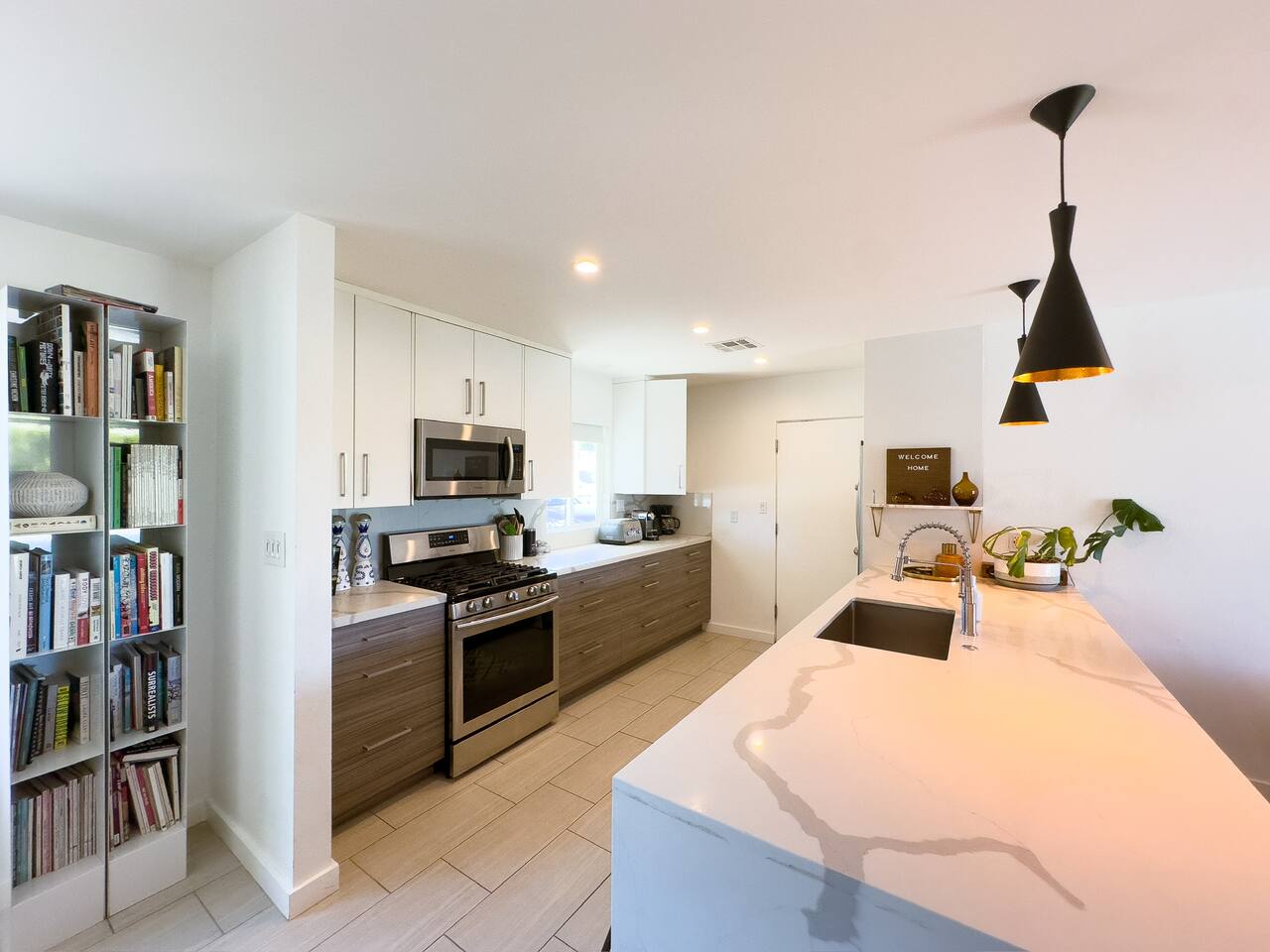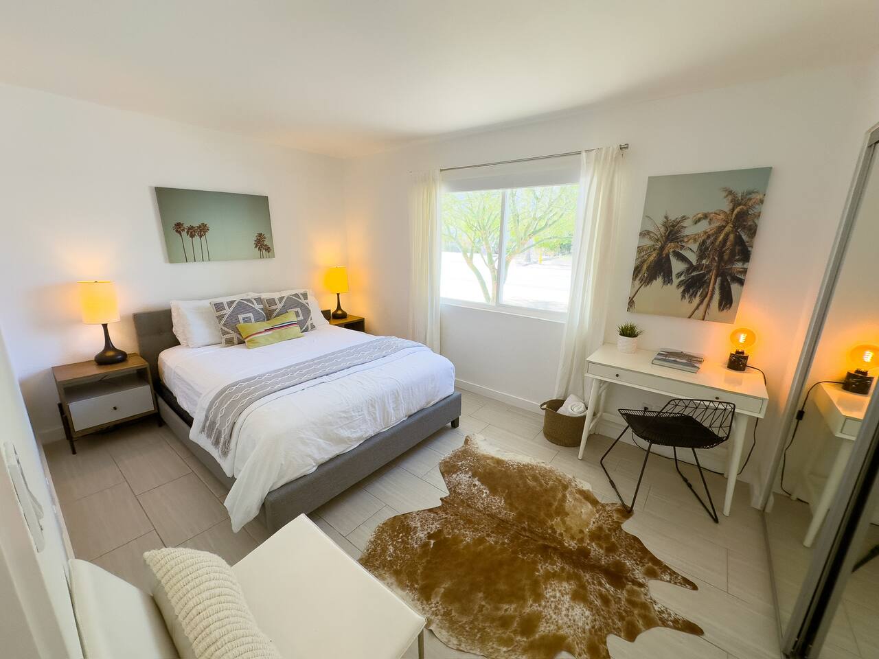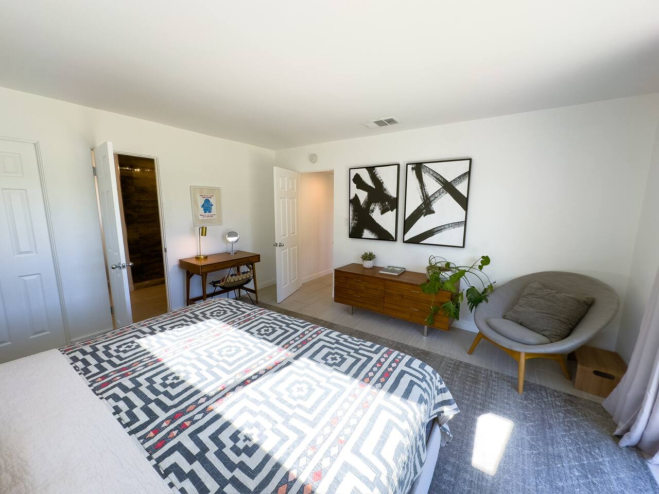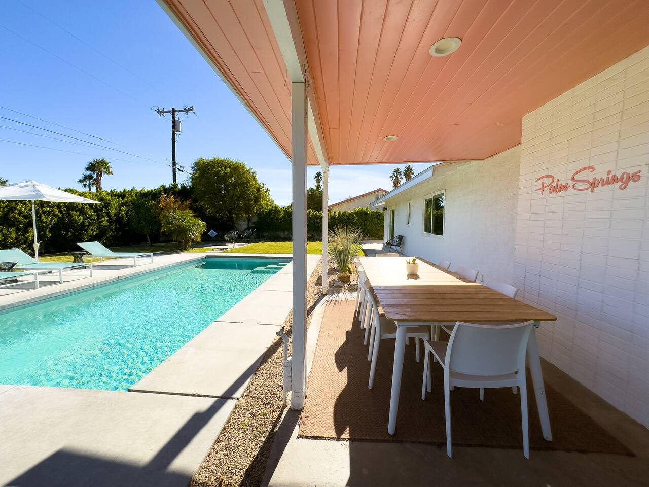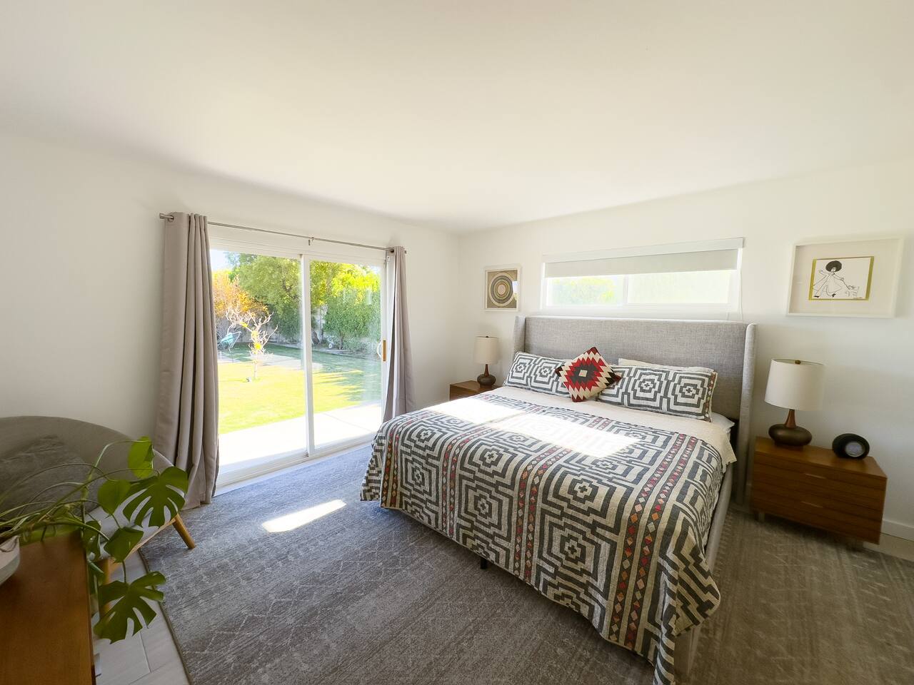 The house sits on a quiet residential street in Desert Park Estates. This home is just 2.5 miles to the heart of the downtown Palm Springs strip of shops, cafes, restaurants, hotels, coffee shops and more on N. Palm Canyon Dr. This home is also just 3.5 miles to the Palm Springs International Airport.