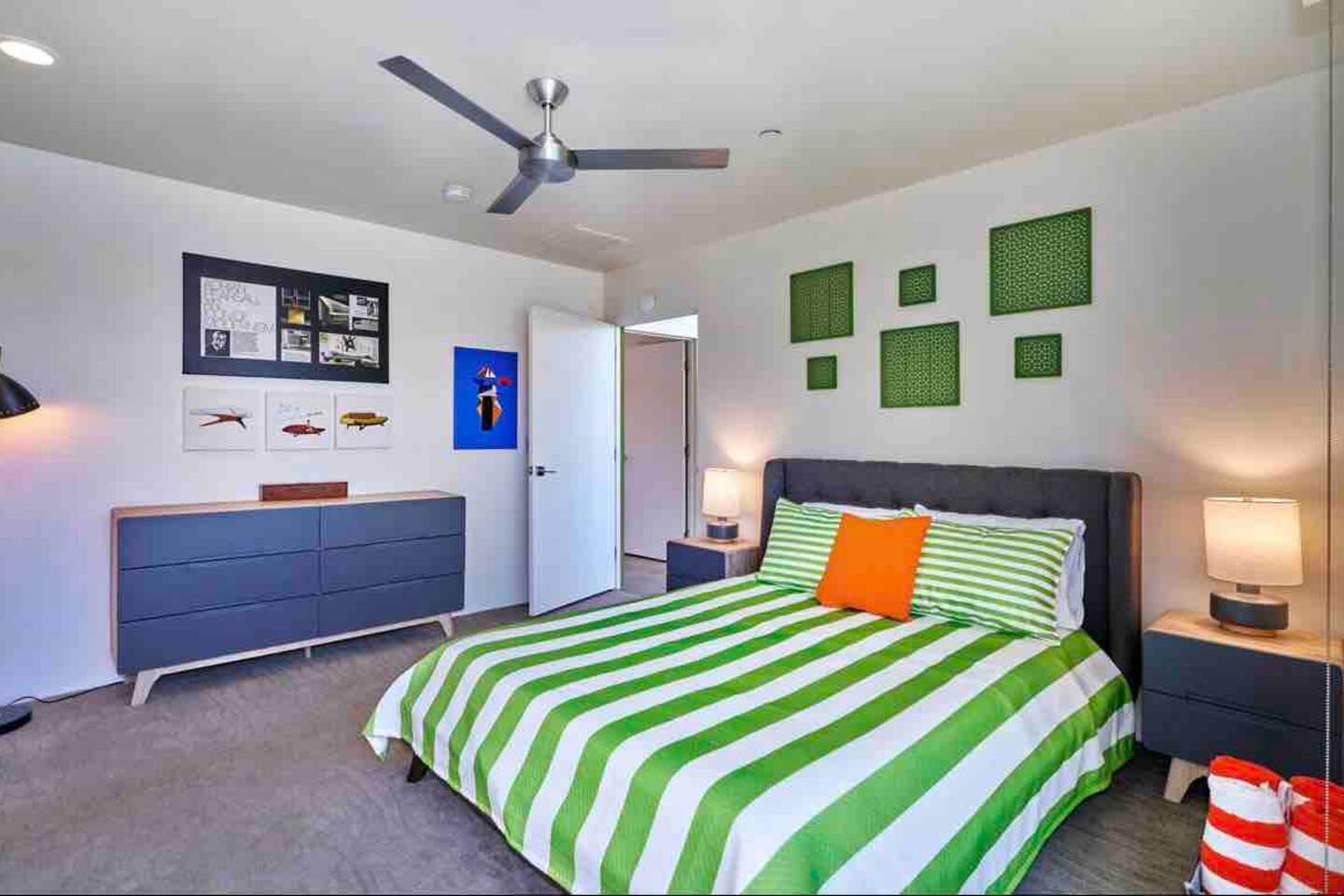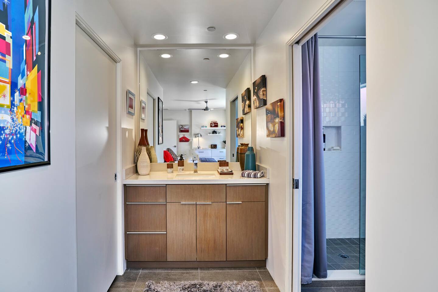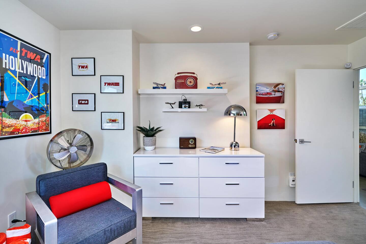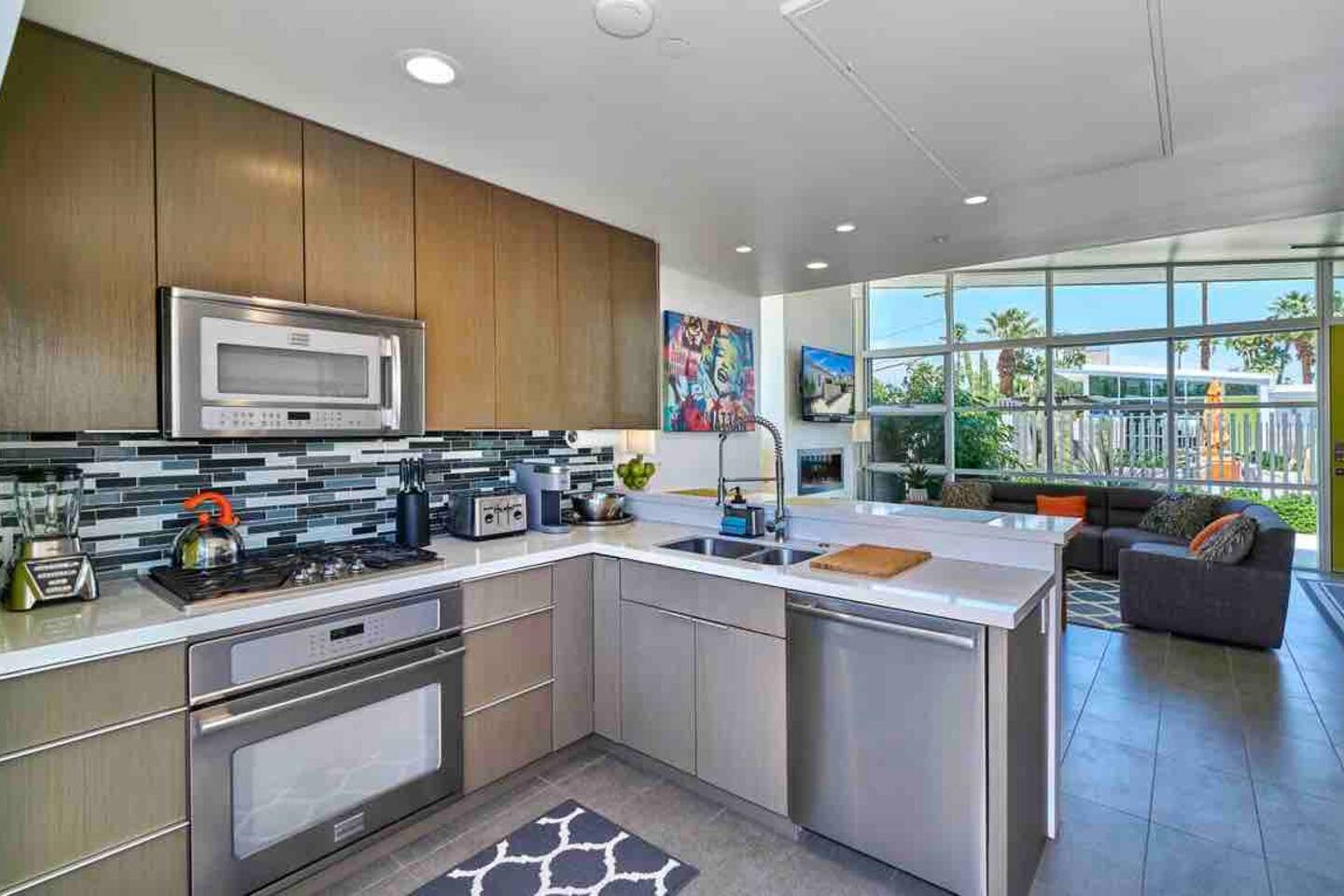 New Century Mod — Treat yourself to this quiet and luxurious experience and discover the Mid-Century inspired construction, impressive design and views inside and out. Ideal for a couple or party of 4. Your needs for a stellar getaway are provided, just bring your bags… unwind! This upscale complex of 9-units share a pool/spa and grill area. Peace will ease your mind into vacation mode. Nestled in Central Palm Springs and just minutes by car or short bike ride to all that downtown has to offer…