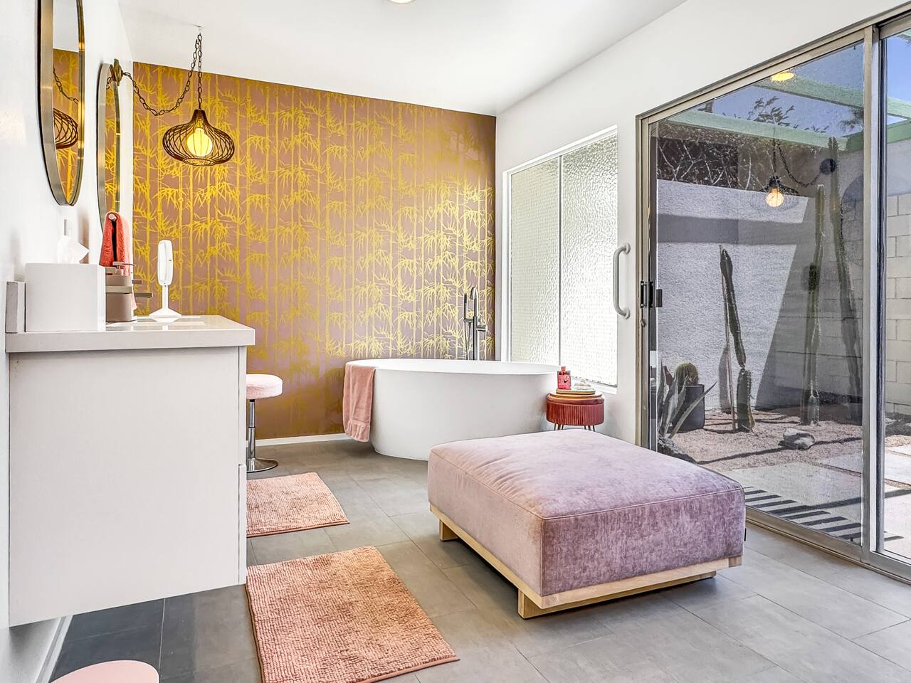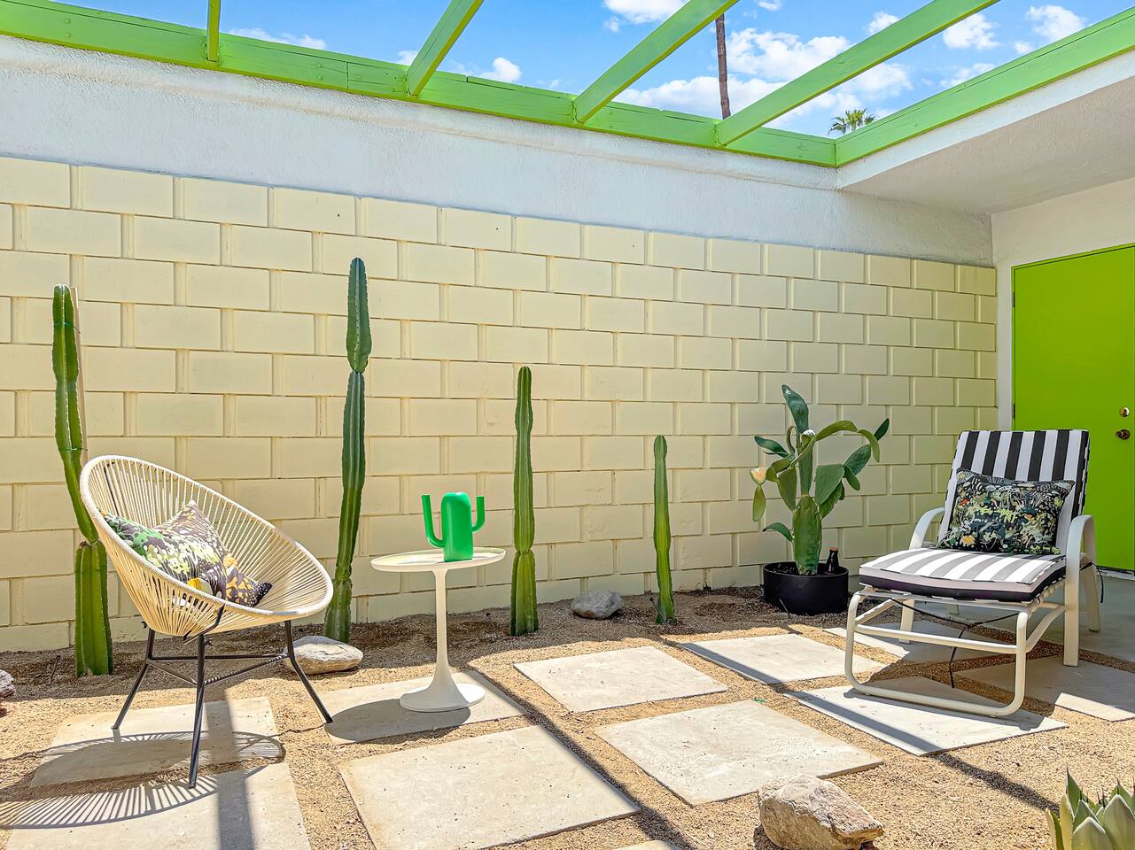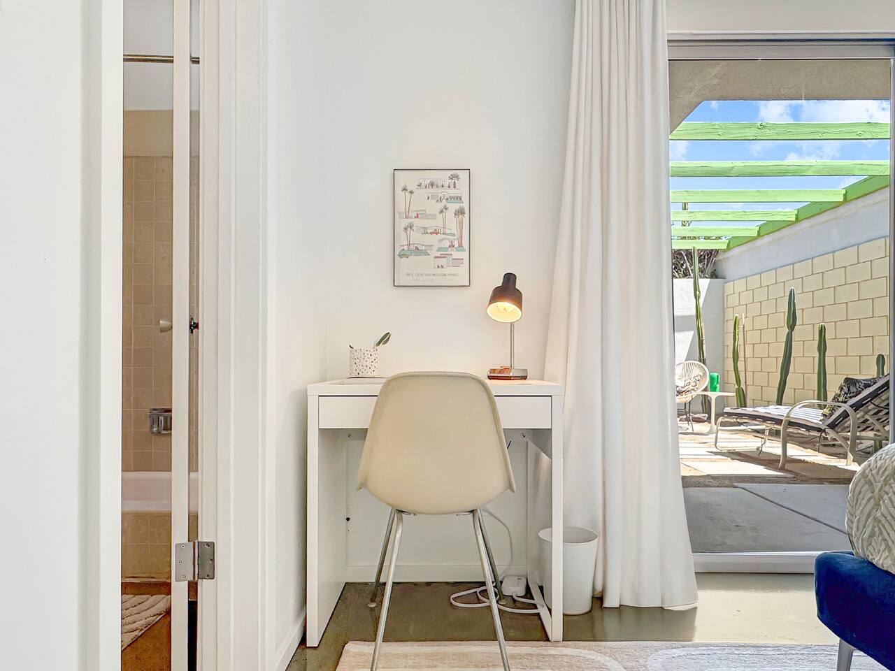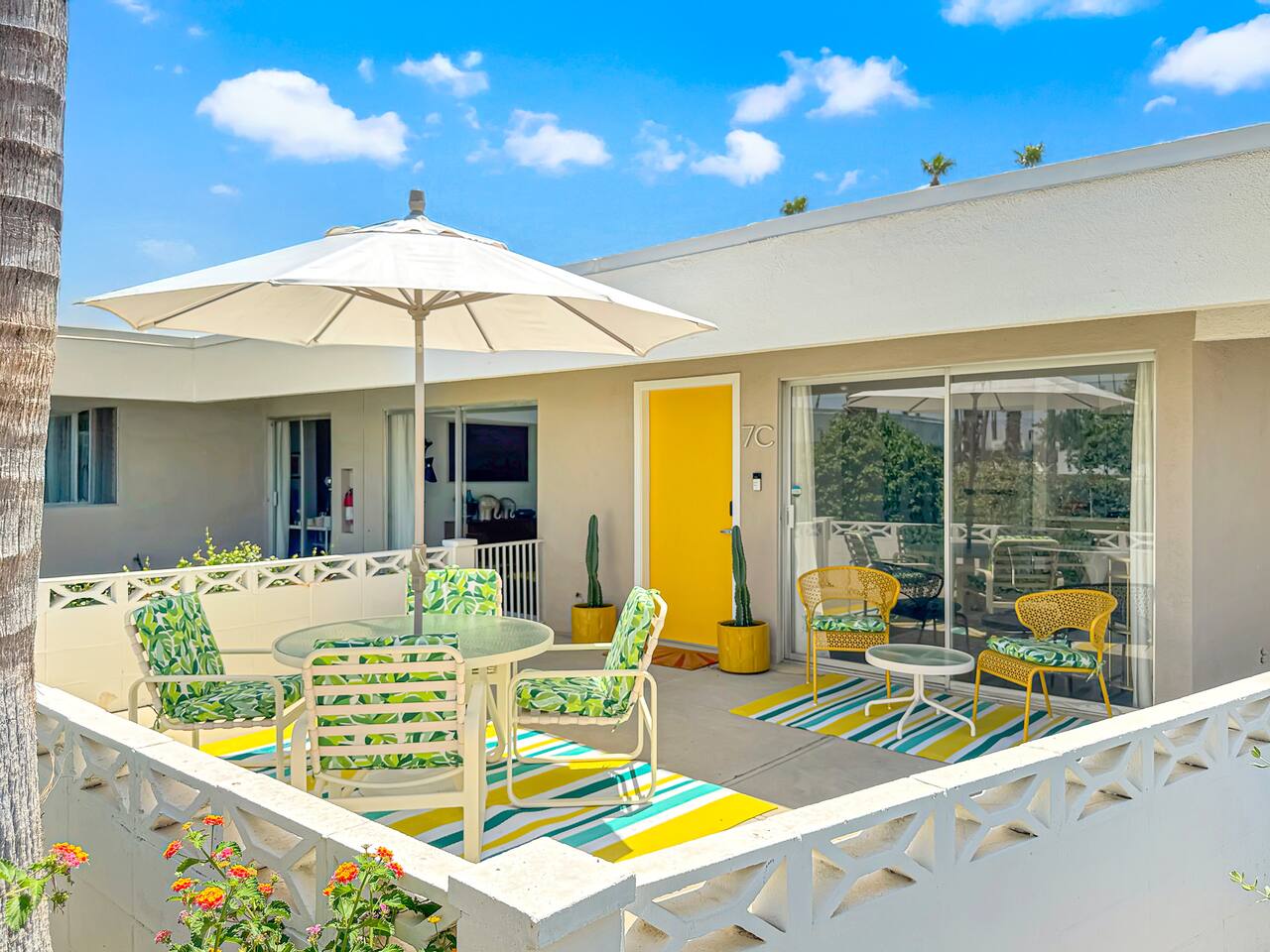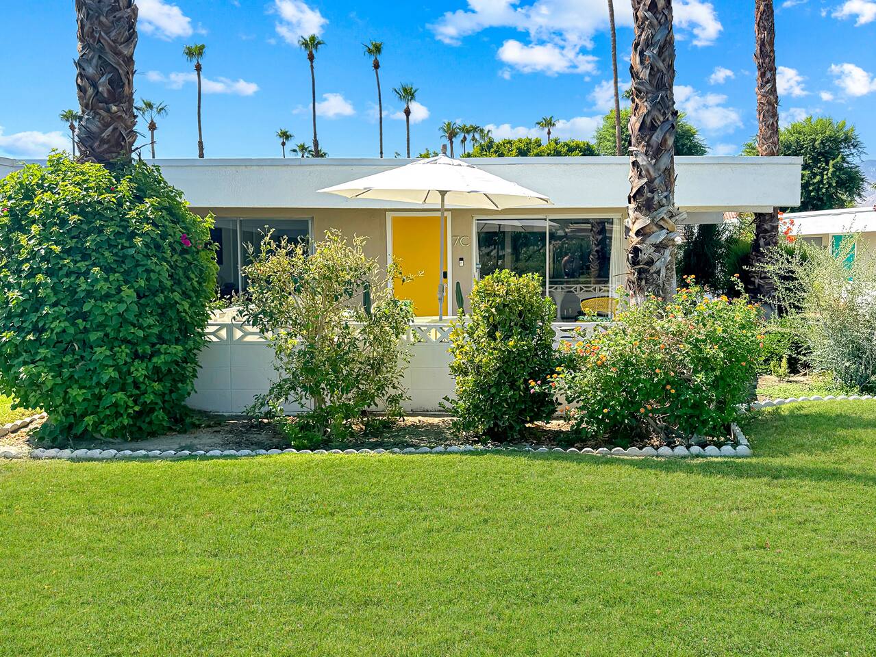 Welcome to The Quiet Cactus, a serene mid-century modern condo in Palm Springs’ historic Firebird Estates—selected as a Featured Property for Modernism Week 2026! Built in 1963 to celebrate indoor-outdoor living, this 2-bedroom, 2-bath retreat offers timeless architecture, a private cactus courtyard, mountain views, and a calming atmosphere. Perfect for extended stays (28+ nights), it’s ideal for guests seeking peace, privacy, and authentic desert style—just minutes from downtown Palm Springs.