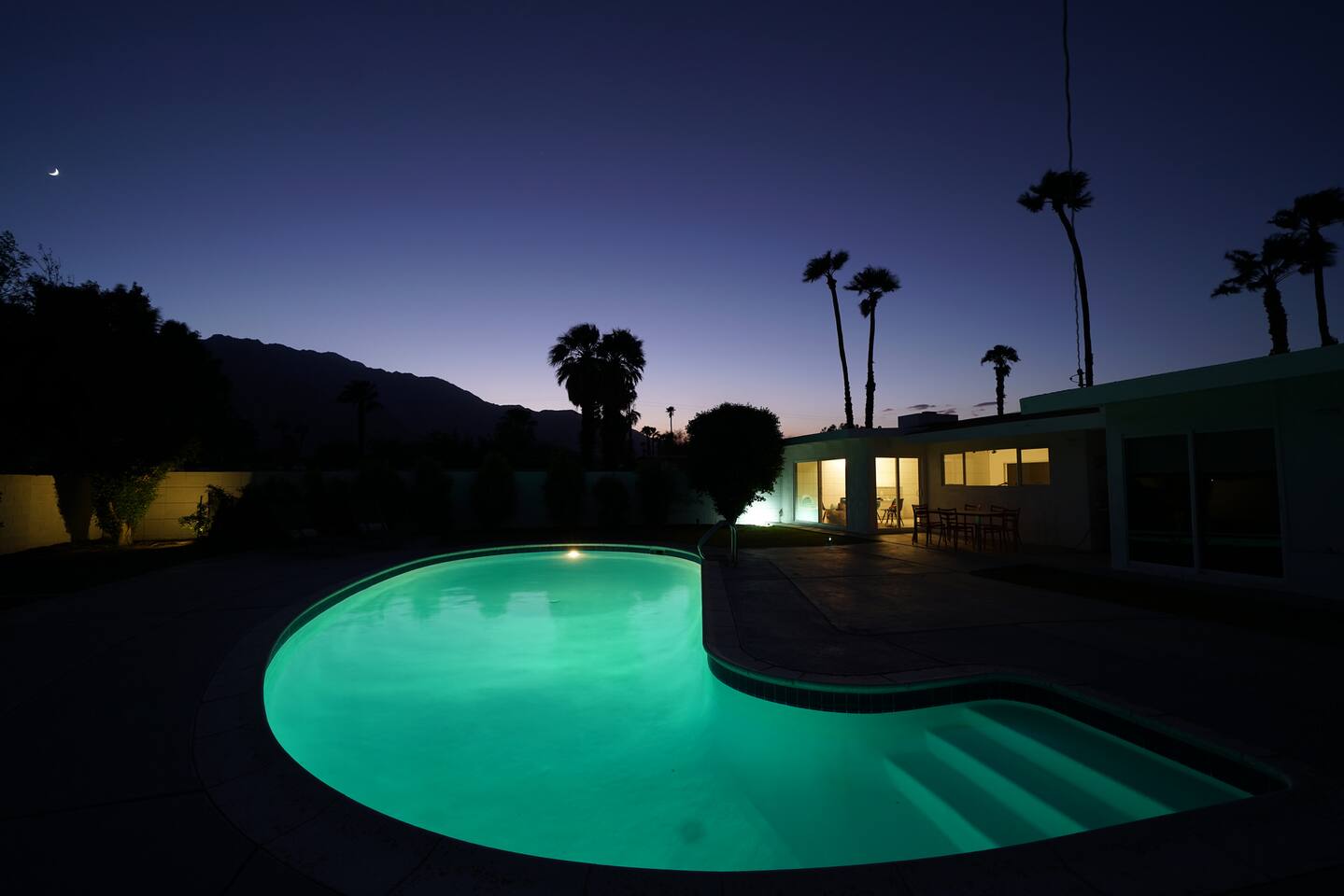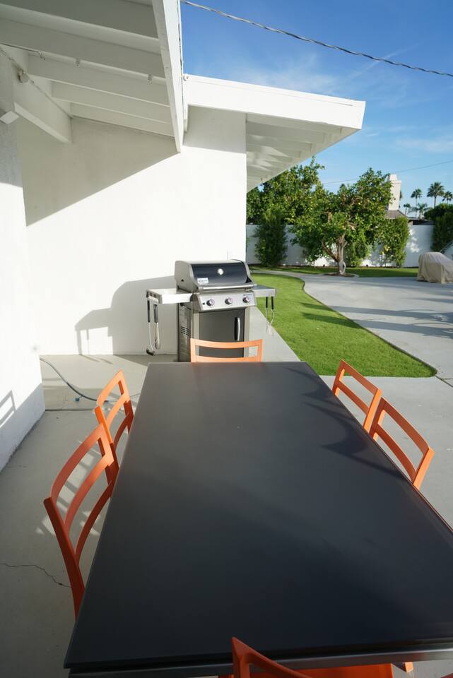 - About the House - Spacious 1500 sq ft Indoor Space Safe and Quiet Neighborhood Corner Lot Parking for 2+ Cars Backyard with the View of Mt. San Jacinto Gas Fire Pit Pool Towels Unique Whale Shaped Pool Optional Pool Heating: $99/day (Recommended Oct - May) - Backyard - 6 Person Dining Table 4 Chaise Lounger Natural Gas Grill Outdoor Seating - Living Room - Plenty of Seating including a Daybed 4K TVs with 4K Apple TV Streaming Service: DIRECTV NOW, HBO GO, Showtime Gas Fire Place Board Games - Dining Room - Dining Table for 8 - Kitchen - All New Kitchen and Appliances 4 Burner Gas Cooktop/Oven Dishwasher Microwave Toaster Coffee Maker Electric Kettle Rice Cooker Blender Mixer Cooking Utensils Plates & Bowls Cups, Mugs, & Wine Glasses Pots & Pans Prep Knives Prep Bowls Indoor Glassware Outdoor Glassware (please don’t take glass bottles or glasses outside) Steak Knives - Bedrooms - 1 King, 1 Queen, 2 Twins Fresh & comfy sheets Comforters with Duvets Blackout Shades Sliding Doors leading out to the Backyard (2 of the Rooms) Desk (1 of the Room) Iron Ironing Board - Bathrooms - Shampoo and Conditioner Bodywash Hairdryer (1) Fresh & comfy bath sheets, hand towels and washcloths The City of Palm Springs ID #: 3847